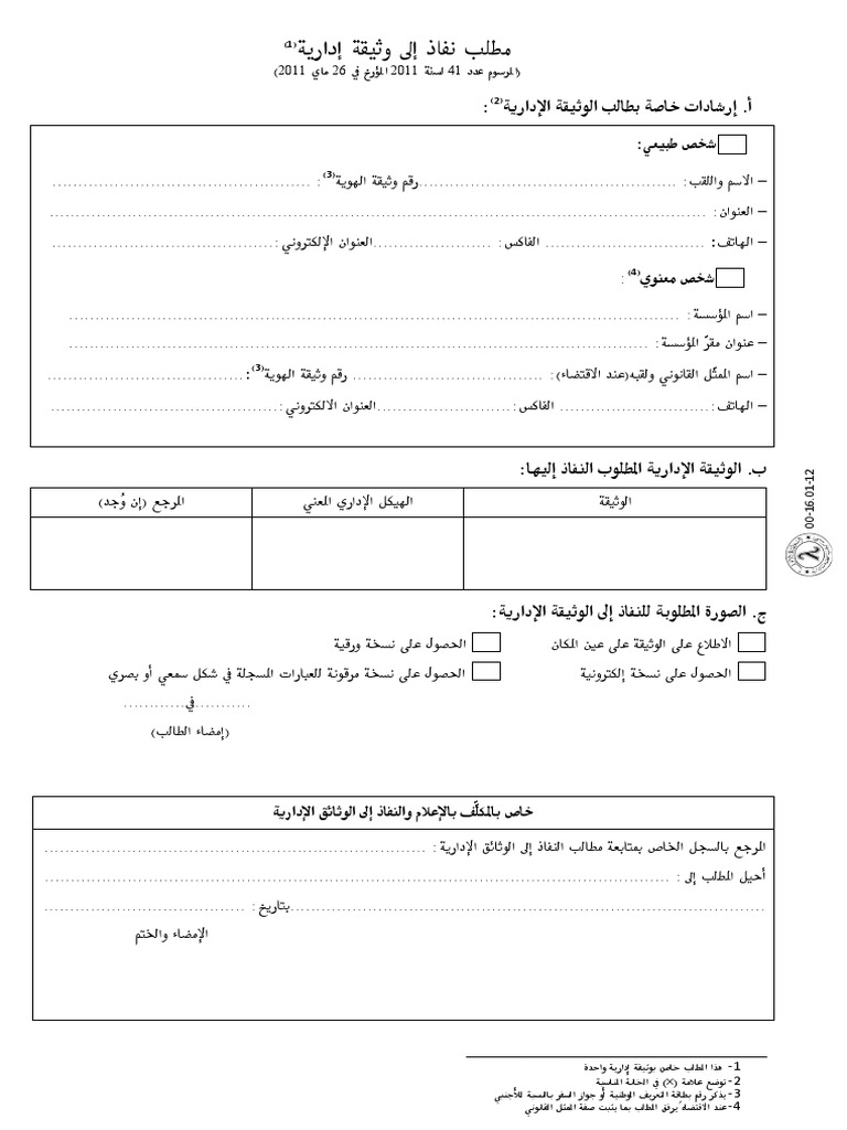 من القانون ) أو بطلب من قبل كل شخص طبيعي أو معنوي بموجب مطلب كتابي في الغرض طبقا للأنموذج التالي الذي يمكن تحميله (مطلب نفاذ الى المعلومة).